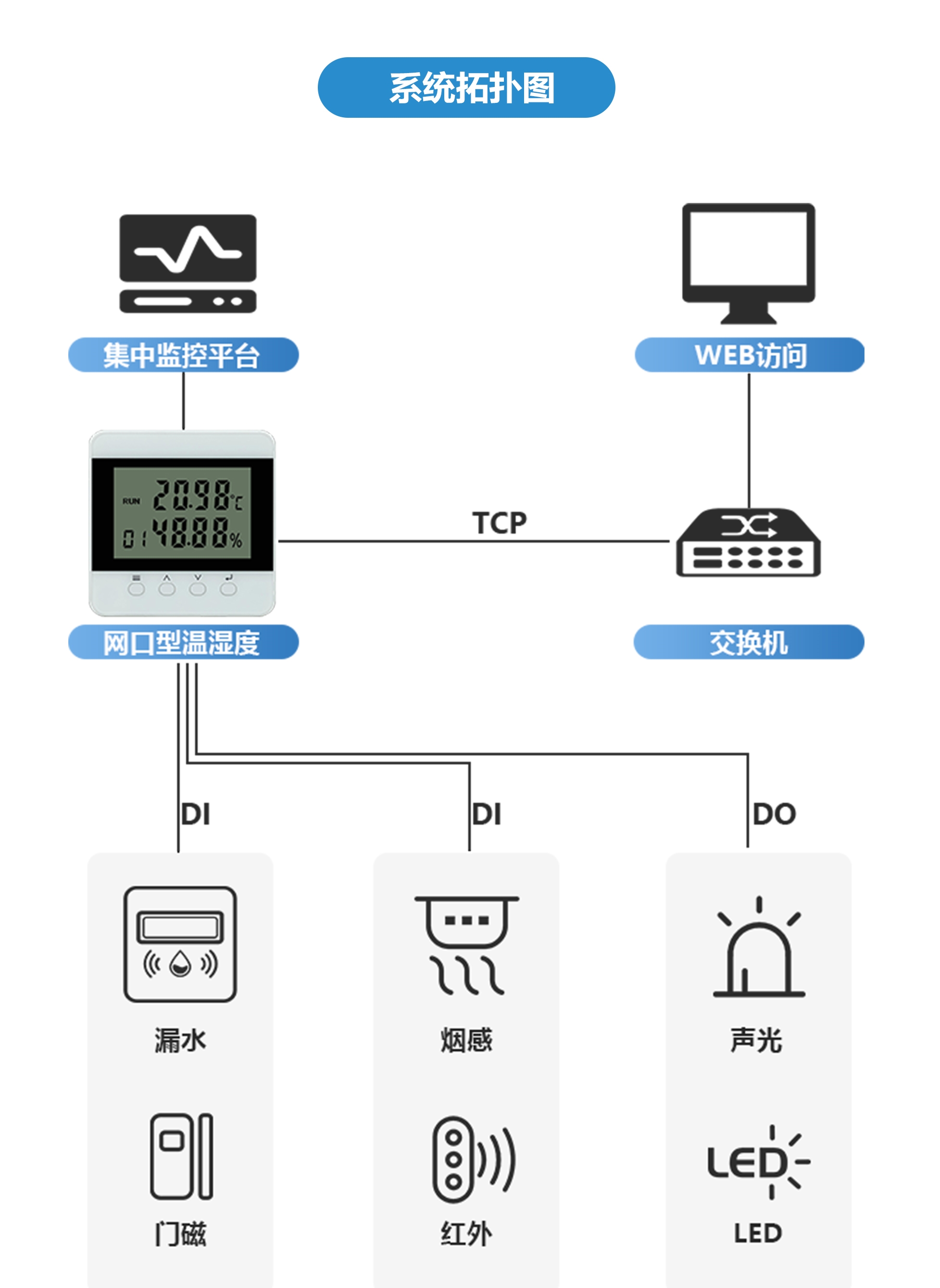 SPD-TH-RJ45網(wǎng)絡(luò)型溫濕度控制器可以用于實現(xiàn)多點監(jiān)測、混合組網(wǎng)、和上位機(jī)系統(tǒng)通訊,該產(chǎn)品廣泛應(yīng)用于工業(yè)現(xiàn)場、養(yǎng)殖場、種植場、辦公室、超市、檔案室、生產(chǎn)車間、倉庫、機(jī)房、自動控制、醫(yī)療等要求溫濕度測量的場合,其高穩(wěn)定性、適用性以及高性價比是產(chǎn)品首選,且可匹配煙感、水浸、供配電等傳感器,接入動力環(huán)控監(jiān)控系統(tǒng)中,實現(xiàn)更智能化的管理。